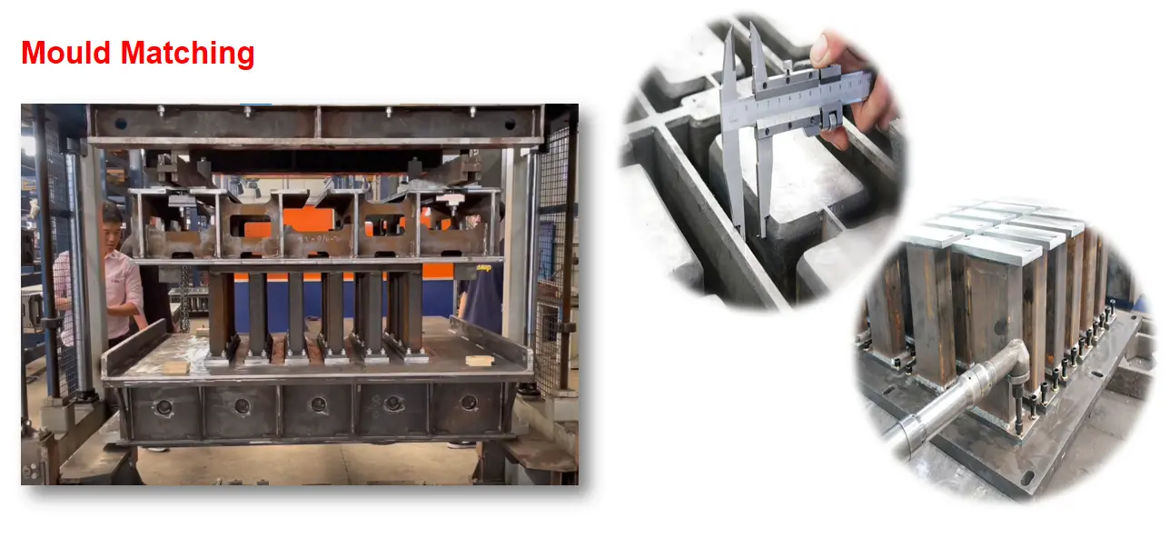 2. Lisovanie: Aplikujte tlak na formu cez tlakový systém blokového stroja, aby ste stlačili a zhutnili materiál v dutine formy. Pod tlakom sú častice v materiáli blízko seba, vzduch je vylúčený a postupne vznikajú tehly s určitou pevnosťou a tvarom.